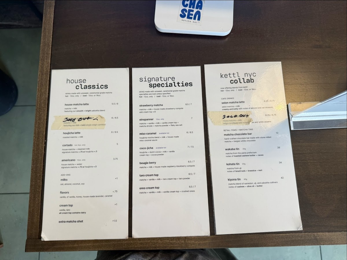 chasen matcha bar Menu